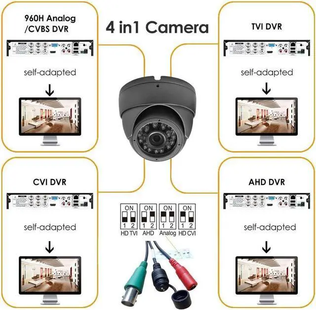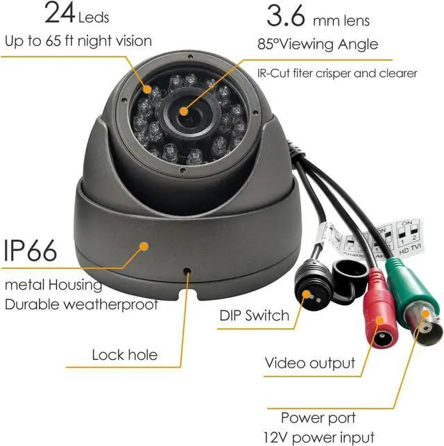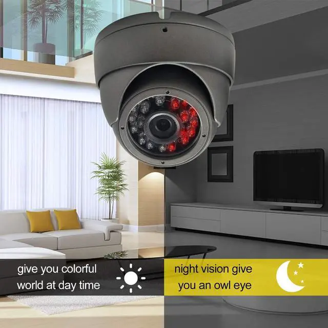 Analog CCTV Camera HD 1080P 4-in-1 (TVI/AHD/CVI/960H Analog) Security Dome Camera Outdoor Metal Housing, 24 IR-LEDs True Day & Night Monitoring 3.6mm Lens (Gray)