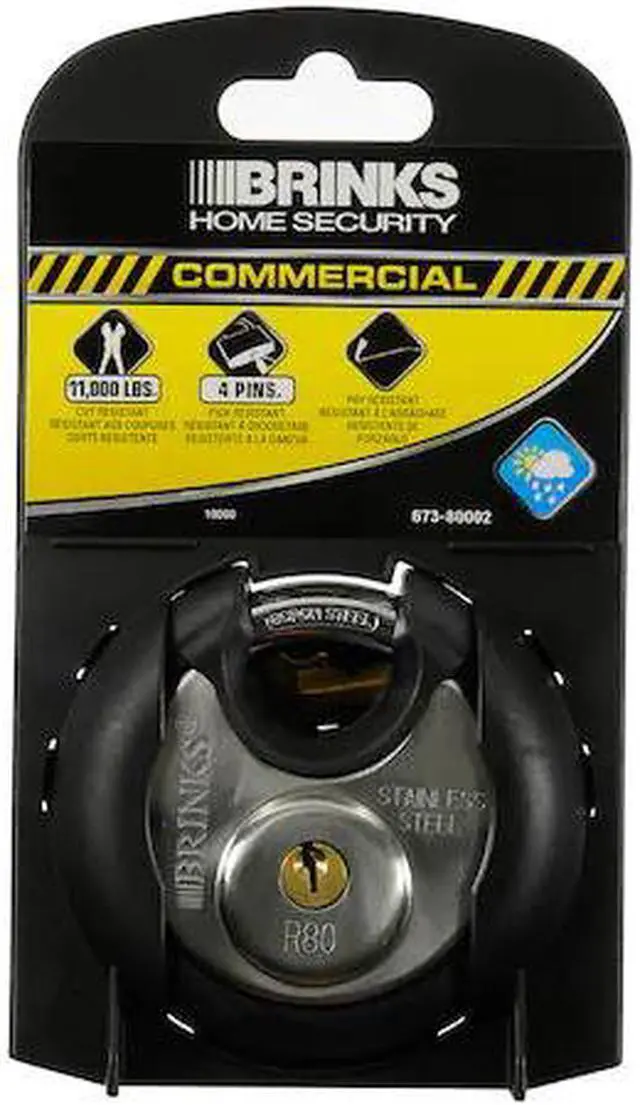 California Proposition 65: This product contains a chemical known to the State of California to cause birth defects or other reproductive harm. 80mm discus lock with a full rubber jacket. The jacket prevents scratching of surfaces and valuables while lock is in use. This padlock is perfect for use on storages units, gates, large locker facilities, or other places the extra security of a shielded discus padlock is required. As a global leader in security-related products and services, the Brink's name is synonymous with top quality merchandise to keep you and your valuable safe.
