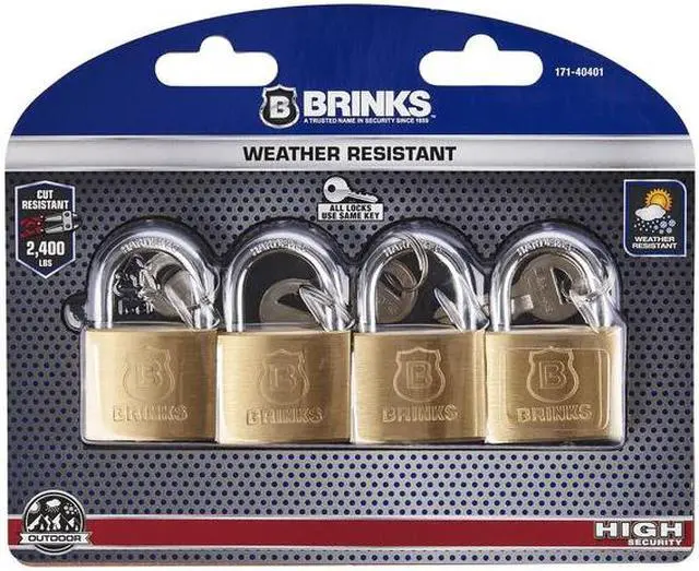 California Proposition 65: This product contains a chemical known to the State of California to cause birth defects or other reproductive harm. Brinks Brass Padlock features a 40mm solid brass body and a chrome plated, hardened steel shackle for increased cut resistance. It is equipped with a five-pin brass tumbler cylinder and double brass bolt locking mechanism for pick resistance. With corrosion-resisting properties, brass is perfect for use indoors and outdoors. The padlock is Ideal for all types of usages such as locking and securing lockers, storages, garages, and toolboxes.