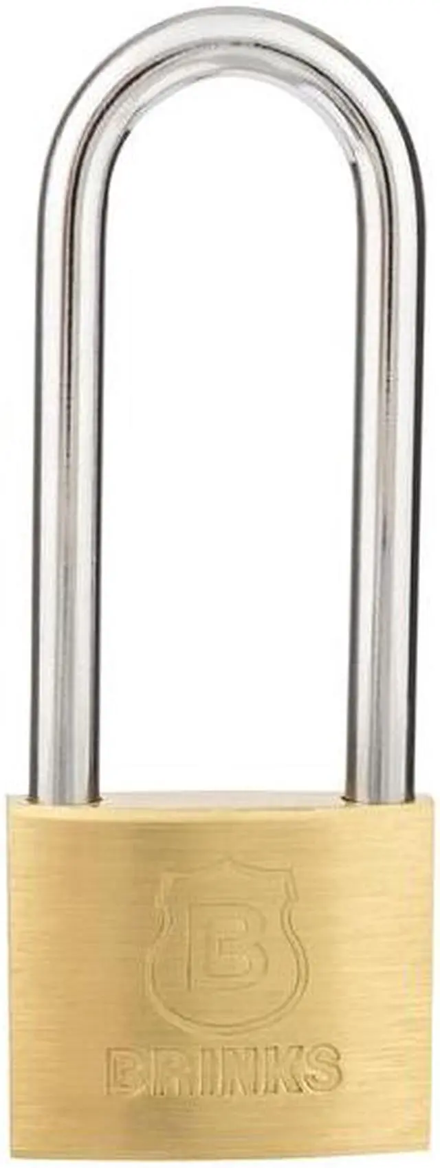 California Proposition 65: This product contains a chemical known to the State of California to cause cancer. California Proposition 65: This product contains a chemical known to the State of California to cause birth defects or other reproductive harm.Keep your valuable items secure with this Brink's 40mm Long Shackle Solid Brass Padlock. It is constructed with a solid brass body to resist corrosion and is enhanced by a 2-1/2 chrome-plated hardened steel shackle for increased cut resistance. The Brink's lock is equipped with a 5-pin brass cylinder tumbler and double brass bolt locking mechanism for pick and pry resistance. With corrosion-weather resisting properties, the all brass padlock is perfect for use indoors and outdoors. Use the padlock while on the job or around the house. It is ideal for securing lockers, sheds, doors, truck workboxes, construction site storage and much more. The padlock is easy to use and open. It comes in a set of four, all padlocks keyed alike for your convenience.