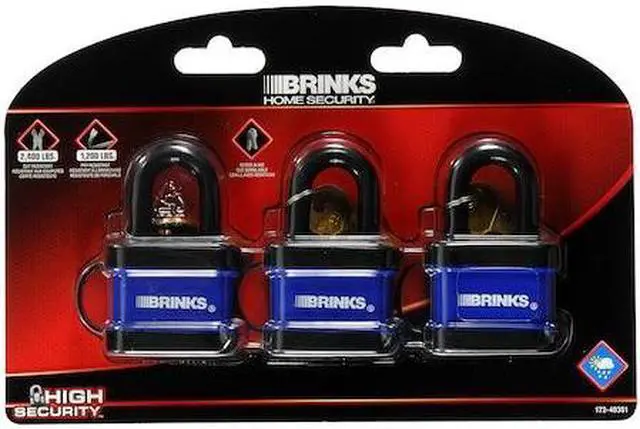 California Proposition 65: This product contains a chemical known to the State of California to cause cancer. California Proposition 65: This product contains a chemical known to the State of California to cause birth defects or other reproductive harm.Brinks Weather Resistant Padlock features a laminated steel 40mm body with a chrome plated, hardened steel shackle wrapped in vinyl for increased cut resistance. The padlock is equipped with brass 4-pin tumbler, dual lever locking mechanism for pick and pry resistance and a key cylinder cover to keep dirt and grime out for long lasting performance. The padlock can be use indoors or outdoors. With its superior corrosion resistance, it is perfect for use in any wet climate and the harshest environments. The padlock is ideal to use to secure doors, gates, sheds, trailers, storages, chains and other items subjected to the elements.