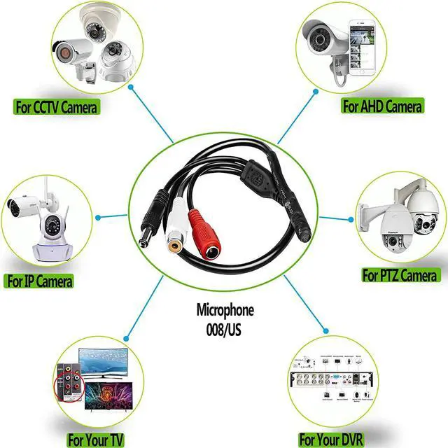BEST CCTV MICROPHONE FOR SECURITY CAMERA ON THE MARKET - This security microphone for CCTV security camera is compatible with devices that accept AV input, like DVR, VCR, TV, and any low-frequency amplifiers
