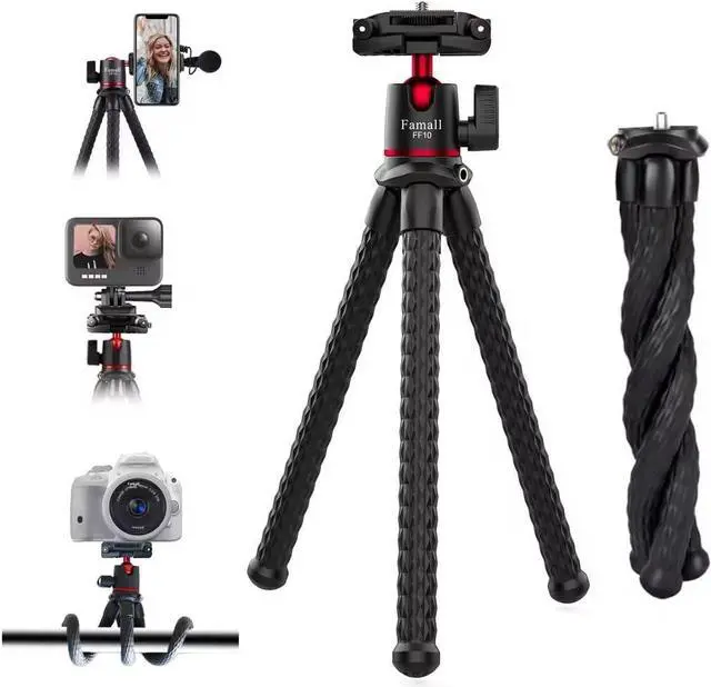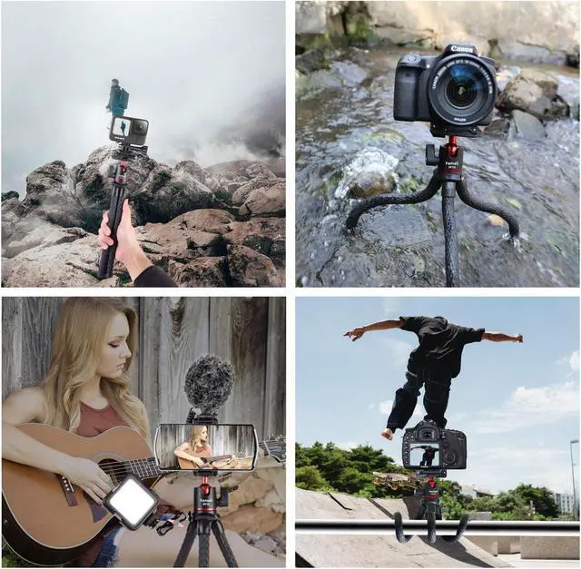 High-strength Material TubeThe camera tripod stand is made of aluminum core. It is sturdy and durable and can be bent arbitrarily and attached anywhere (sloping or slick surfaces). Allowing you to capture different angles on your trip.