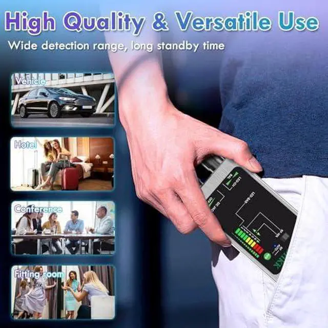 AI Smart Signal Detection Comprehensive Security: The device triggers alerts after detecting six strong wireless signals, making it ideal for devices that transmit intermittently, such as hidden cameras or trackers designed to conserve energy. This feature ensures comprehensive detection even in challenging scenarios.