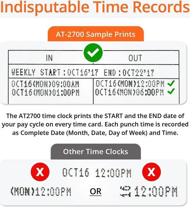 EASY TO USE, TOUCH FREE: Featuring fully automatic time card feed and alignment. No buttons to press, simply drop-in your time card. Reduce surface contamination in your workplace!QUICK SETUP: Guided menu + Quick Start Guide for easy 2-minute setup; Lifetime phone and email support included.ACCURATE RECORDS: Unlimited daily punch times, clear record of your pay cycle date on each time card.