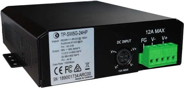 5 Port Unmanaged Gigabit 802.3at Mode B PoE Layer 2 Network Switch, 12-24VDC Wire Terminal Input, 140W