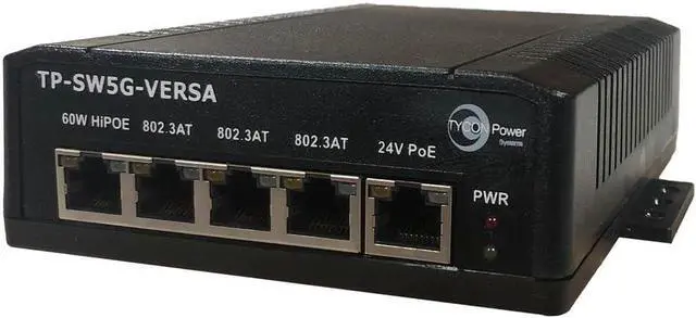 5 Port Unmanaged Gigabit Versatile PoE Layer 2 Network Switch, 46-58VDC Wire Terminal or 4 Pin Mini DIN Input