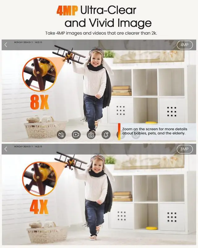 Latest Upgraded 2.5K Resolution & 360° Coverage: With 4MP resolution and 355° pan & 115° tilt, You can remotely rotate Pet camera with phone app to watch riveting footage of your puppy snoozing, or you might solve the mystery of why theres fur on the kitchen counter. cameras for home security. inside cameras for house.