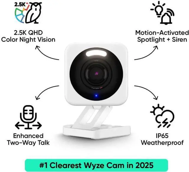 Indoor/Outdoor Versatility - Engineered for durability with IP65 weather resistance, Wyze Cam v4 is an ideal security camera, offering reliable house surveillance in any weather. It' s both an indoor camera and outdoor security camera. Wyze Outdoor Adapter (sold separately) is required for Outdoor use.