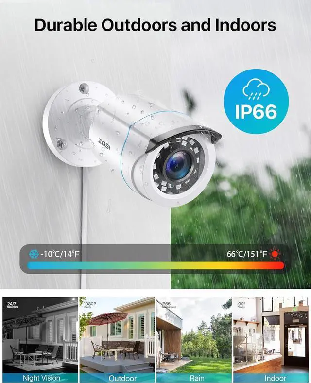 [ IP66 Metal Weatherproof ] __ Camera used high quality metal aluminum materials, 3-Axis camera stand, cable through bracket for hassle free use in rainy or snowy days. Camera Power Supply and Coaxial Video Cables are not included but they are required and sold separately.