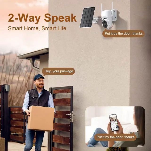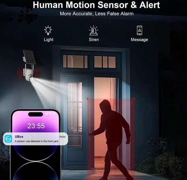 Instant alerts with siren alarm when motion detected; Remote live view and 2-way talk through phone app anytime
