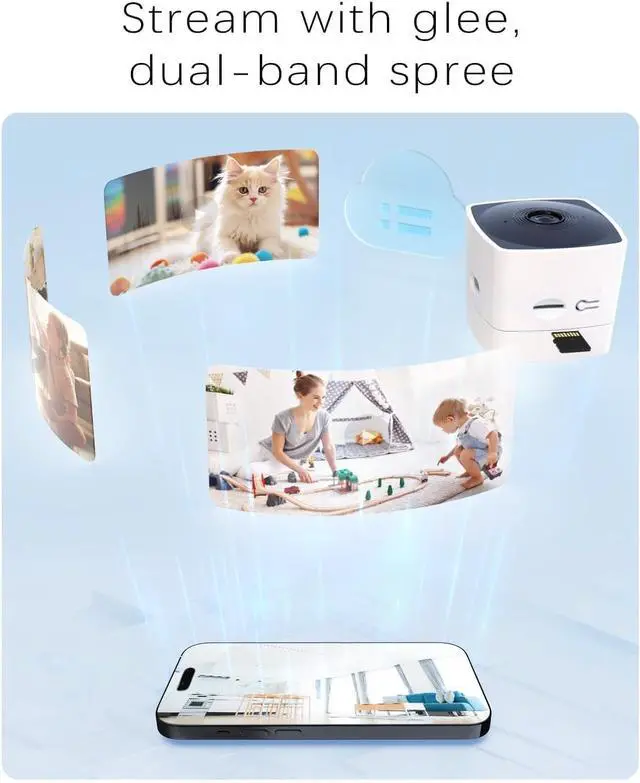 Reliable Dual-Band Connectivity: With support for both 5GHz and 2.4GH z Wi-Fi, the security cameras indoor ensures consistent, lag-free streaming. This dual-band flexibility allows you to choose the best connection for your home environment, providing reliable surveillance and security.
