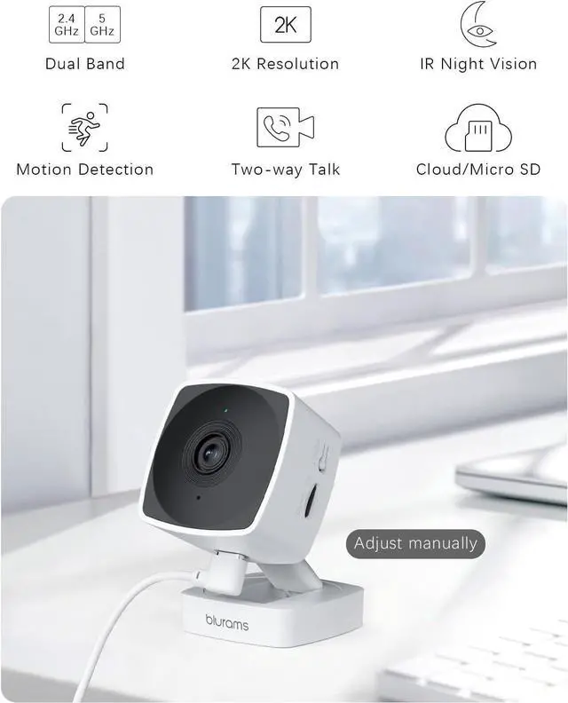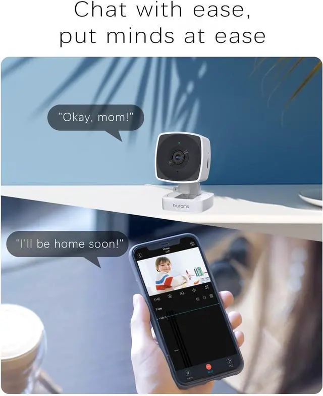 2K Ultra HD & Enhanced Night Vision & Two-Way Talk: Equipped with high-resolution 2K imaging and infrared night vision, this blurams indoor camera captures clear images even in complete darkness. Whether youre monitoring a room at night or just checking in, youll experience the detail and clarity you need for peace of mind. Equipped with Mic and speaker, you can interact with your baby, pet, family and visitors from anywhere.