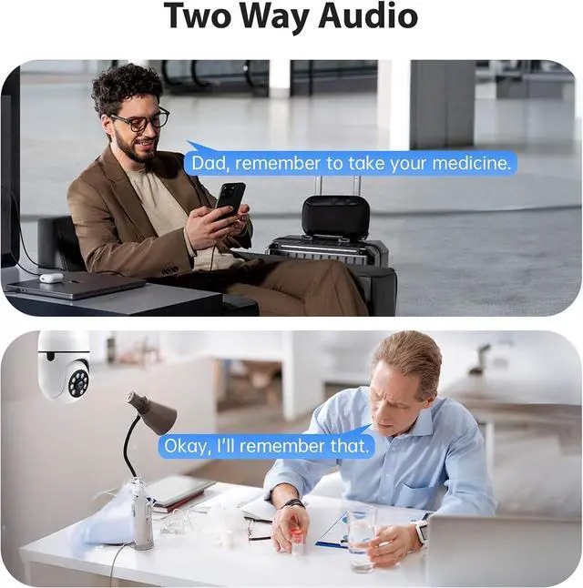 Two-Way Talk & Motion Detection: Built-in microphone and speaker, the security camera wireless outdoor can have a conversation between you and your visitor, Cameras for home security outside built-in microphone and speaker support two-way language real-time call, communicate with your family members or visitors without any obstacles, realize face-to-face communication.