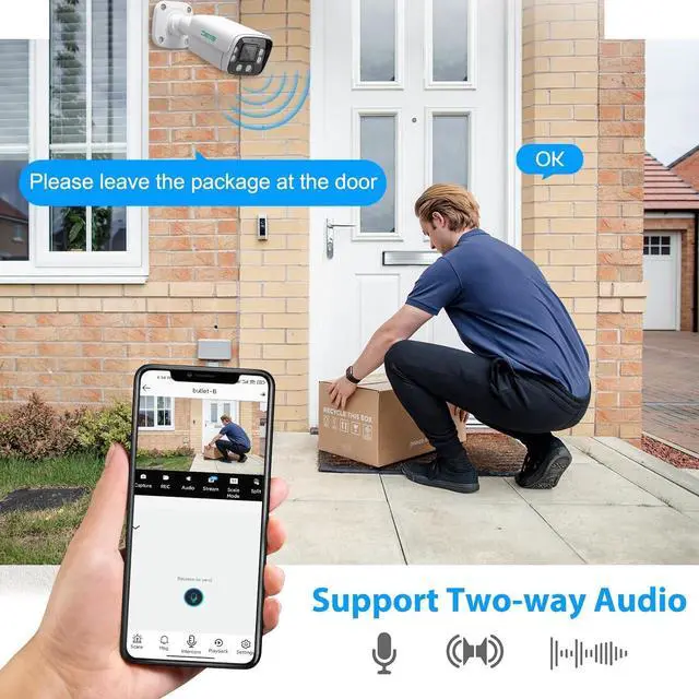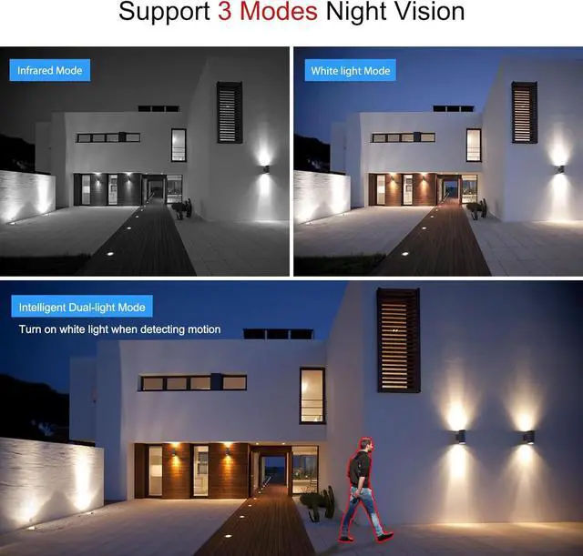 3 Modes Night Vision & 2-Way Audio Want to see color night vision? Try this poe security camera! It supports infrared mode, white light mode, and intelligent mode, allowing you to customize Lighting on/off time. This poe security camera has a built-in microphone and speaker, so it supports two-way audio. You can communicate with the people who in front of the poe security camera or eliminate danger by making a sound.