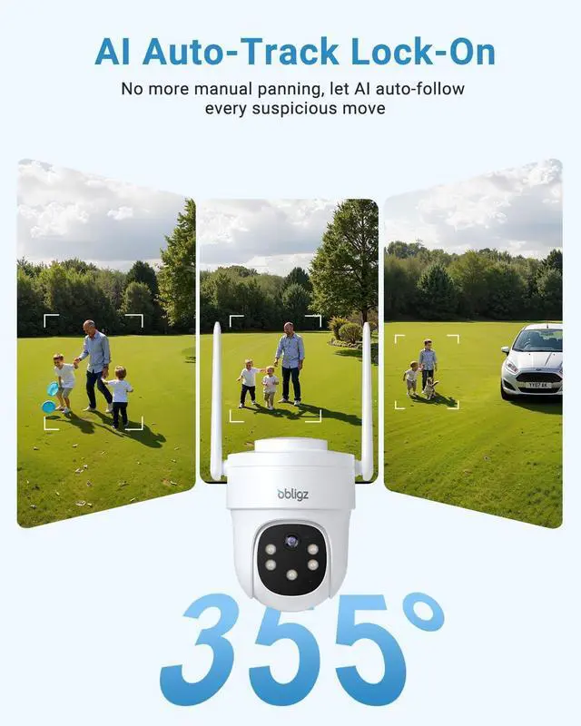 [New Technology, New Experience]The Obligz AOV camera employs advanced AI algorithms paired with high-performance visual sensors instead of traditional PIR sensors for motion detection. This enables ultra-fast activation in under 100ms with a 99% detection accuracy, minimizing false alarms and missed detections. Additionally, the detection range extends up to 90 ft, ensuring a complete record of everything you care about