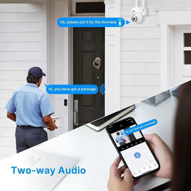 2 Way Audio& Remote View: Wifi security camera enables you talk with you family or visitors on your mobile phone, what' s more, you can warn and drive away the suspicious person to leave your home. Wireless ptz camera support live view on your mobile phone and windows pc through download Free APP " EseeCloud".