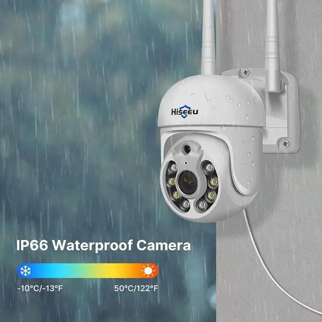 Motion Track& Alarm: Hiseeu outdoor camera support smart detection and motion track, When an object movement is detected, the camera will track the object and record it, and you will receive alerts message directly on your IOS/Android device from the app immediately. You won' t miss any important moment.
