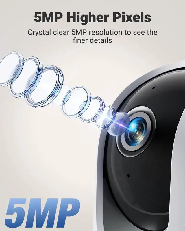 Wifi: The 5MP indoor security camera no subscription offers stunning video quality, capturing details with crystal-clear precision. This indoor security camera supports both 2.4GH z and 5GHz dual-band connectivity for a fast and reliable WiFi connection. Enhance your security today with this versatile home camera, designed to provide you with peace of mind
