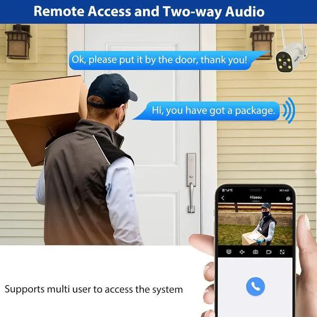A Super Remote Video IntercomOnce you connect your camera to your home WiFi, even when you travel, you can see the person in front of the camera and the two way audio using the camera through the Eseecloud app Hiseeu strictly respects the privacy agreement. All the camera data are encrypted. Only your account can access the data.