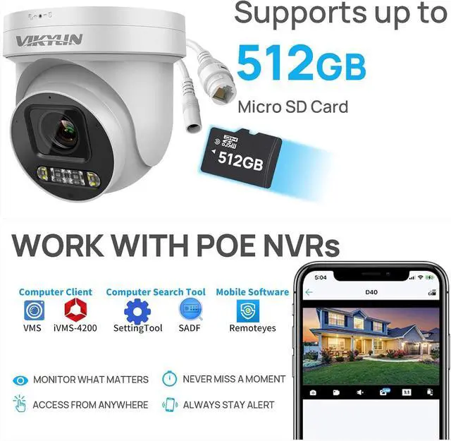 HUMAN/VEHICLE DETECTION&BUILT IN 2-WAY AUDIO: The 8MP PTZ full color camera equipped with professional human/Vehicle detection functions, the detection area or sensitivity can be adjusted to effectively reduce false alarms. When person enters the video area, the camera will automatically detect and send the real-time video/snapshot to your mobile phone built-in 2-Way Audio allow you to hear the people in front of the camera no matter where you are