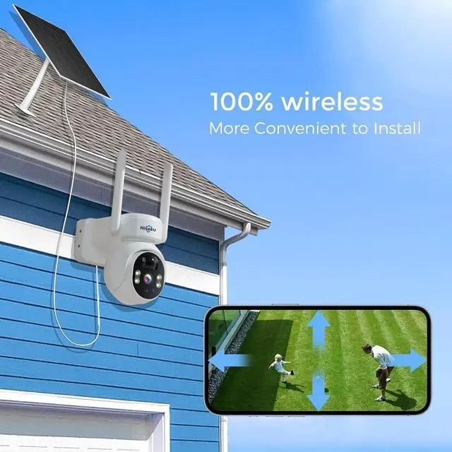 PIR Detection & Two-Way Audio: The wireless solar camera will push an alarm notification to APP when detecting humans' movement. You can chat through the it, or scare off unwelcome people through spotlight or siren alarm.