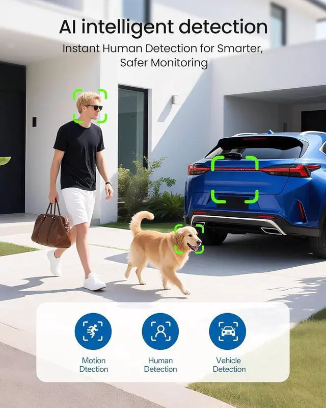 Smart AI DetectionT5EP Smart Ai security camera not only detect human/vehicle, but also accurately distinguish between human, pet, vehicle, package, and even facial recognition after subscribing. Combined with enhanced sound and light alerts, T5EP makes a key moment or potential threat instantly catch your attention and allows you to respond swiftly.