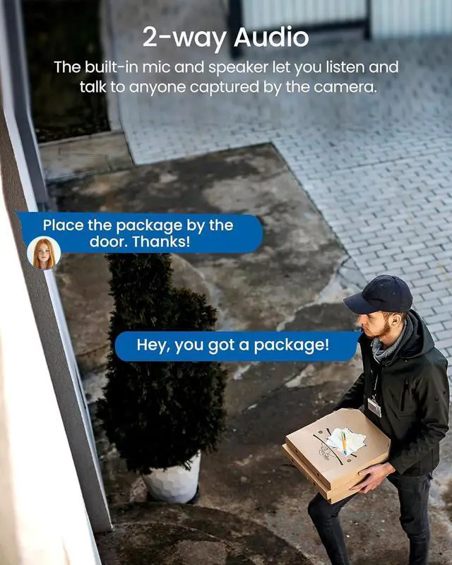 Two-way Audio & Remote AccessBuilt-in speaker and mic, you can communicate seamlessly with loved ones through home security camera, enhancing security and maintaining a connection. Enjoy the convenience of remote access, allowing you to view live from anywhere via smartphone or PC.
