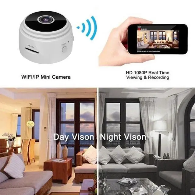 Mini Security Camera with Night Vision 1080P Motion Detection Wireless Nanny Cam with Adjust Snake Tube, White