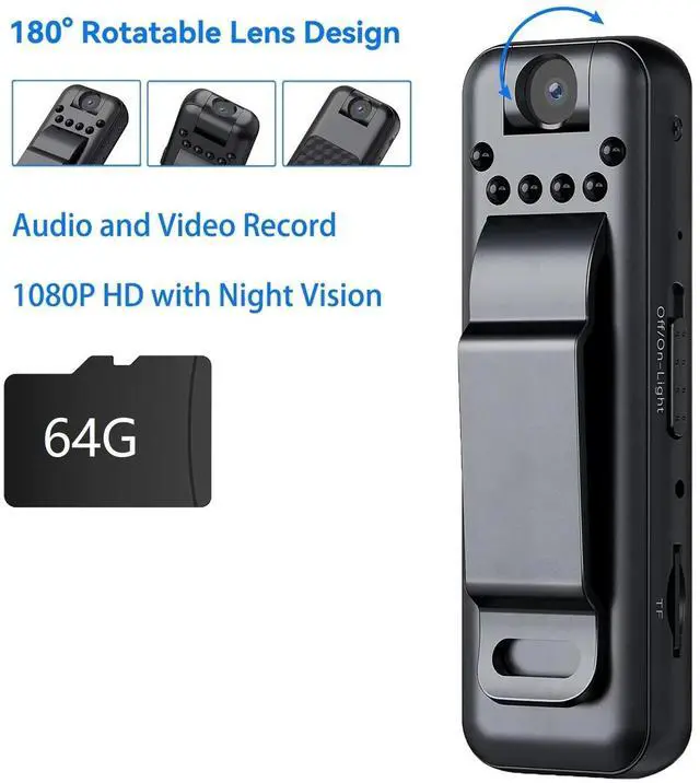 Hidden body camera design powered by a rechargeable lithium battery and built- in 64GB storage (up tp 128GB) that lasts up to 180mins of recording time. When Motion detection is on, if a moving object is detected, it will automatically record. This small bodycamera supports charging while recording. By plugging the mini camera on the portable power bank, you can use it as long as your want.