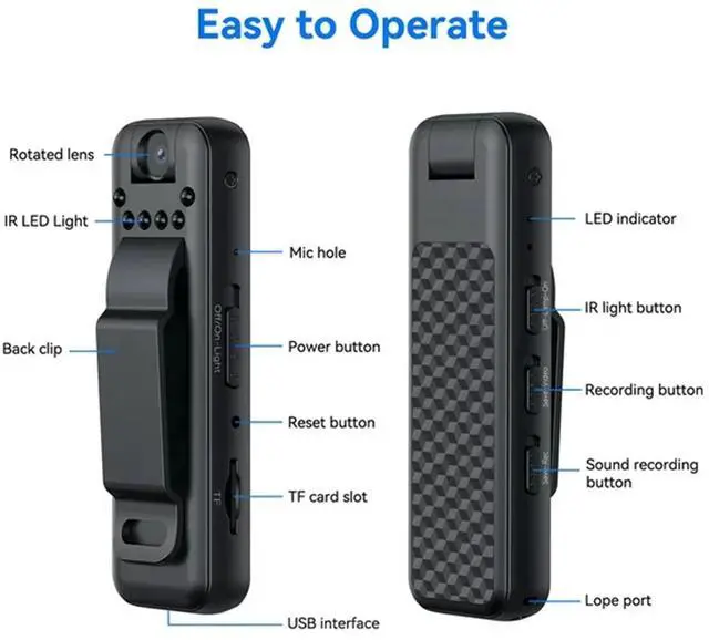 1080P Video Recording, This body camera equipped with High-Intensity infrared Night , also clear footage up to 15 feet in -black darkness. The IR lights are not visible, and won't bother in dark environment