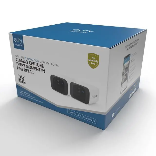 SoloCam C210 is an ideal choice for homeowners who want to add high-quality surveillance to their existing security system. Sunset to sunrise the outdoor security camera captures every activity around your home in crystal-clear 2K detail even in low-light settings. Enjoy full control of videos and data with 8GB of high-speed local storage up to 3 months of footage (at an average of 400 seconds captured daily) and no monthly cloud subscription fees. Reduce false alerts from the eufy Security App as built-in smart AI recognizes and prioritizes human detection rather than notify you when a neighborhood pet or a swaying tree comes into view. Built to withstand the harsh sun and rainfall with IP67 weatherproof protection, the wireless security camera is easily installed in minutes.