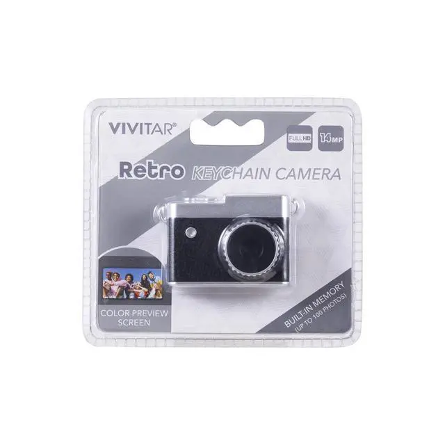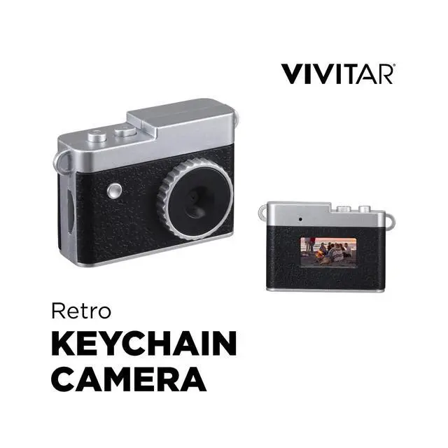 DIXSG Retro Keychain Digital Camera (VEFKY1-BLK) is a mini portable digital camera that combines retro style with modern functionality, making it ideal for travel, vlogging, family events, and everyday photography. Capture clear 14-megapixel photos and Full HD 1080p videos with vibrant detail, view them instantly on the built-in color display screen, and store up to 100 photos with built-in memory or add more using a Micro SD card (sold separately). This compact rechargeable camera features a USB-C charging port and an ultra-lightweight keychain design, making it perfect for on-the-go shooting, vacations, parties, and outdoor adventures. A great choice for kids, teens, and adults, this mini camera for travel and content creation is perfect for social media, YouTube videos, TikTok clips, and fun everyday moments. The Vivitar digital camera is also an excellent gift idea for birthdays and holidays, offering affordable photography technology in a stylish, pocket-sized package.