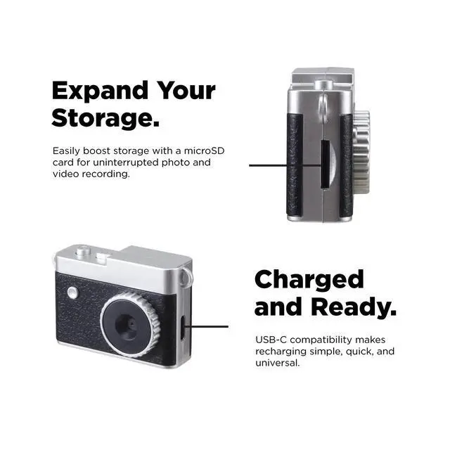- : This mini portable digital camera combines a fun retro vintage style with a modern digital build. Small enough to fit in your pocket or hang from your keychain, its perfect for travel, vlogging, outdoor photography, and family adventures.