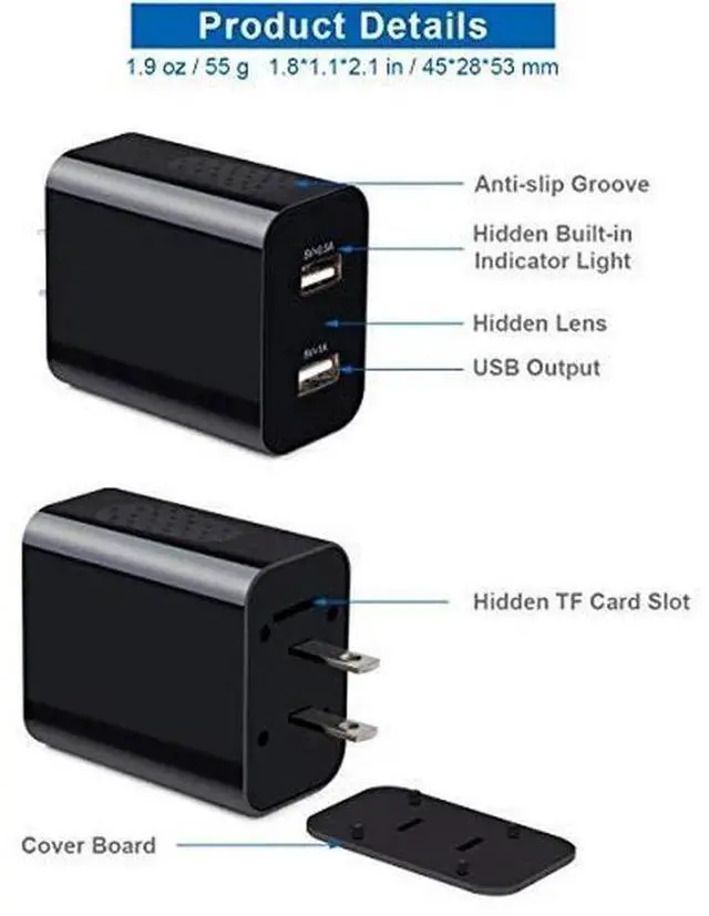 urveillance: This wireless camera, disguised as a USB charger, offers remote live viewing via an app once connected to Wi-Fi, enabling discreet real-time monitoring from any location.