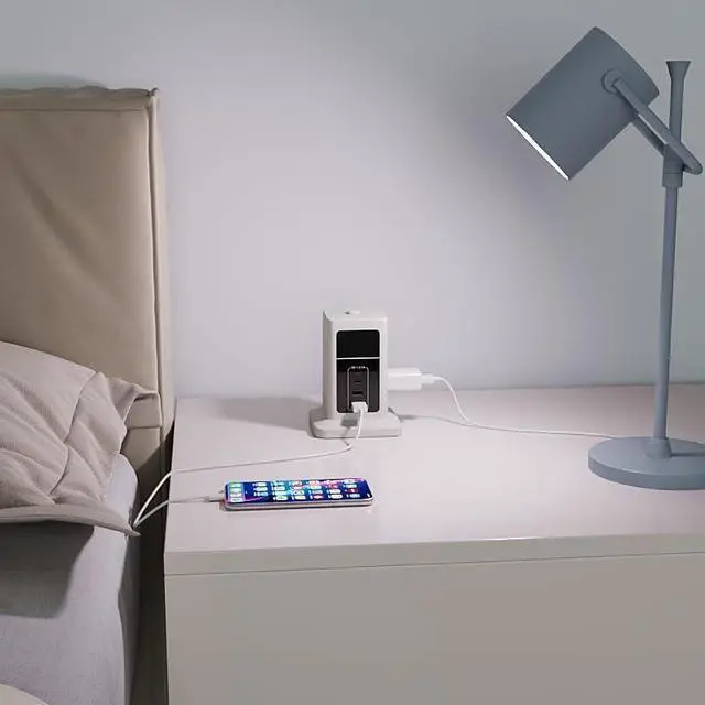 2. 6-outlet 4-USB power socket : This power socket is an advanced device combining a smart camera with a power tower. It features 6 AC outlets, 2 USB-A (5V/3.1A) ports, and 2 USB-C (5V/3.1A) ports, ensuring the safety of this unique product.