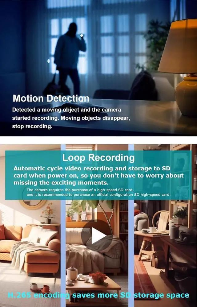 • SD Card Recording: And Surge Multi-Protection saves SD cards from corruption. cam require a 128GB SD Card ( NOT INCLUDED a SD CARD ) that hold videos up to 15 days. Wifi camera auto works 10 mins video clip and overwrites the oldest files when SD card full for continuous . Surge Multi-Protection saves SD cards from corruption.