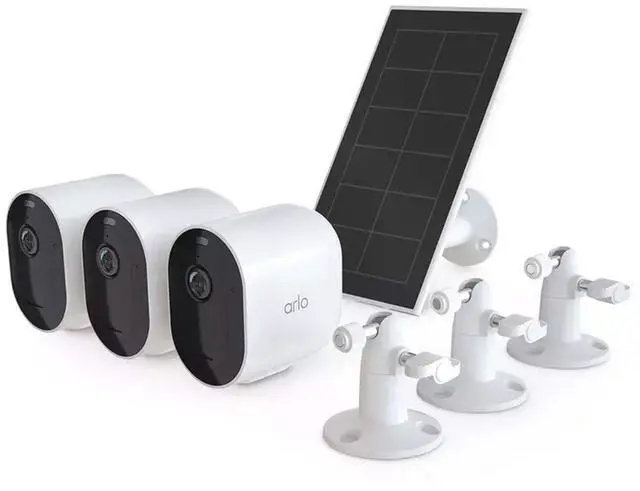 Includes: 3 cameras, solar panel, charger, and mounting accessories
