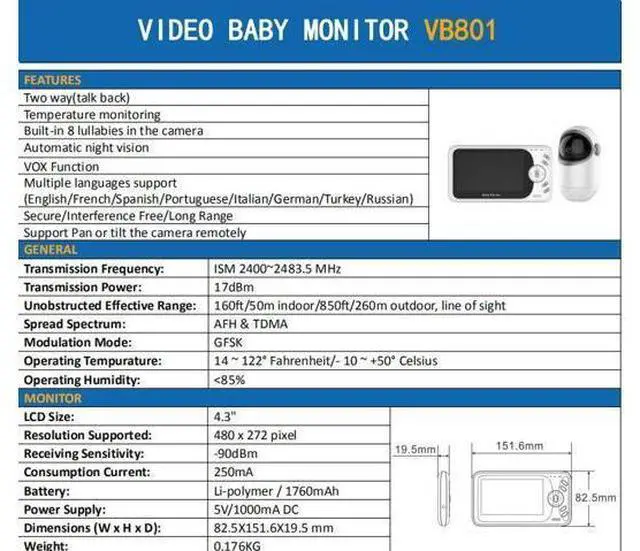 • Comprehensive monitoring: 4.3-inch display provides a clear, real-time view of your baby's environment, ensuring peace of mind.