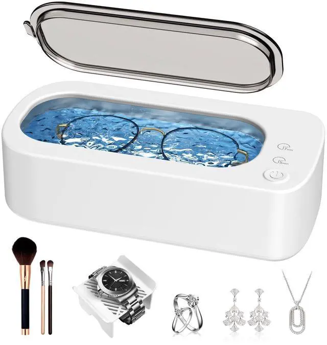 For jewelry, use with a professional water-based cleaning solution for best results. For eyeglasses, it effectively cleans frames and crevices, but lenses should be wiped gently after cleaning to remove residues.