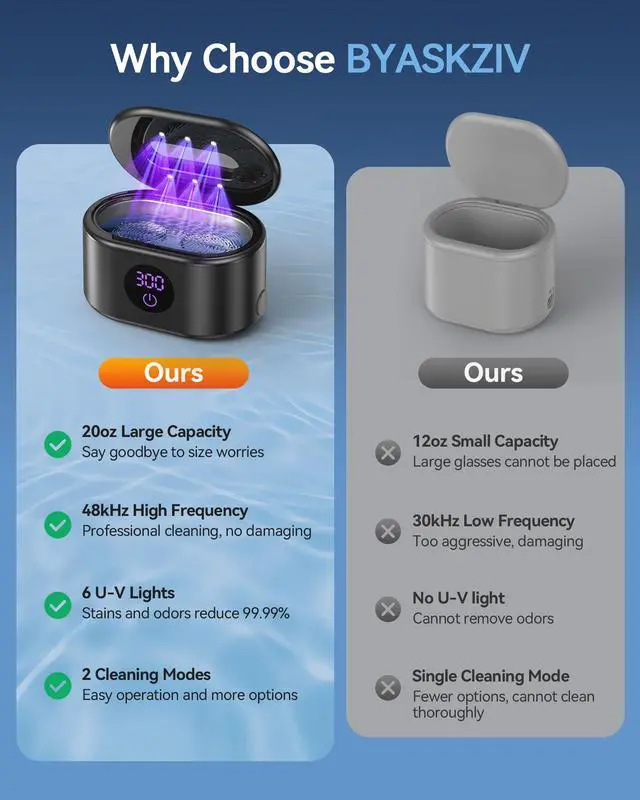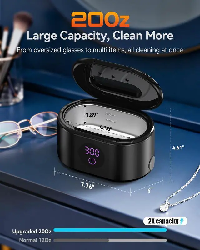 The ultrasonic cleaner has a 20oz capacity, easily accommodating oversized sunglasses. You can also clean multiple items at once to save time.