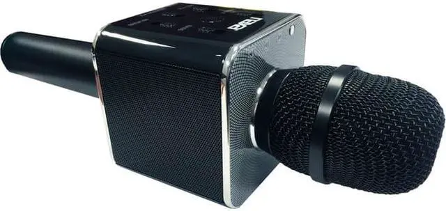 Portable all-in-one karaoke microphone with built-in stereo speakers