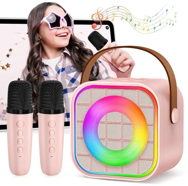 Mini Karaoke Machine with 2 Wireless Microphone, Portable Pink Bluetooth Speaker for Kids Adult, Birthday Teen Toys Gifts Ideas for Girls Ages 4 5 6 7 8 9 10 11 12+ Year Old, Family Home Party