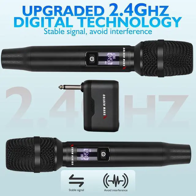 GOLDEN MARS is committed to providing you with a high-quality audio experience. Our products feature a brand-new design and advanced 2.4GHz AI automatic frequency pairing technology, bringing you a new wireless microphone and microphone system with no noise, stable transmission, zero latency, and uninterrupted connection. Whether you are singing, using it for home karaoke, hosting, or attending parties, GOLDEN MARS is a reliable partner.