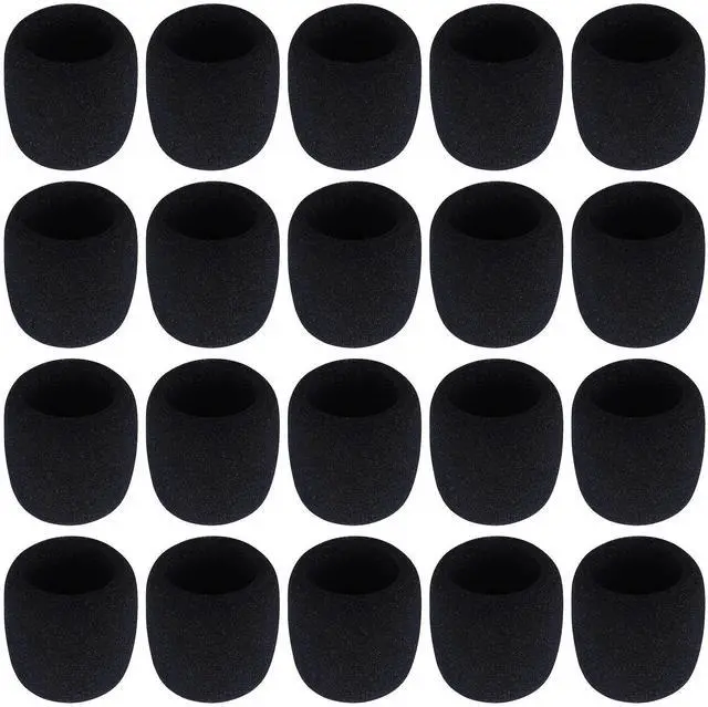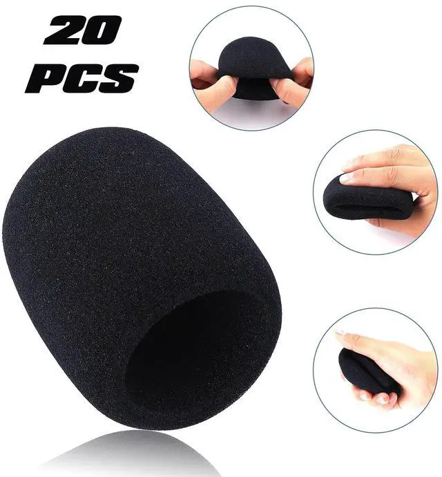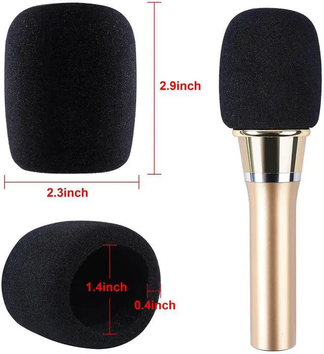 The size of our microphone covers foam is about 2.9 x 2.5 inches, the caliber size is 1.4 inches, suitable for most standard handheld microphone, but not suitable for headset mic, which can reduce wind interference noise and other unwanted background noise.