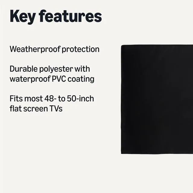 Waterproof Outdoor TV Cover for 48" - 50" Flat Screen TVs, Fits up to 47"L x 29.7"H, Black