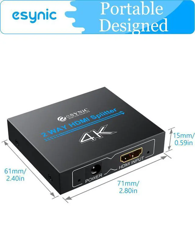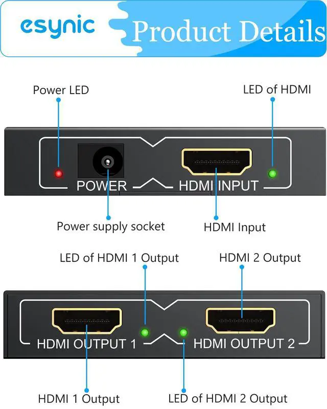 *With Latest High Performance Chip*----: This HDMI Splitter Box utilizes the latest noise reduction and lossless transmission technology. Made of aluminum alloy with a 24K gold-plated interface, it offers good anti-interference for ultra HD resolution and pure clear sound.