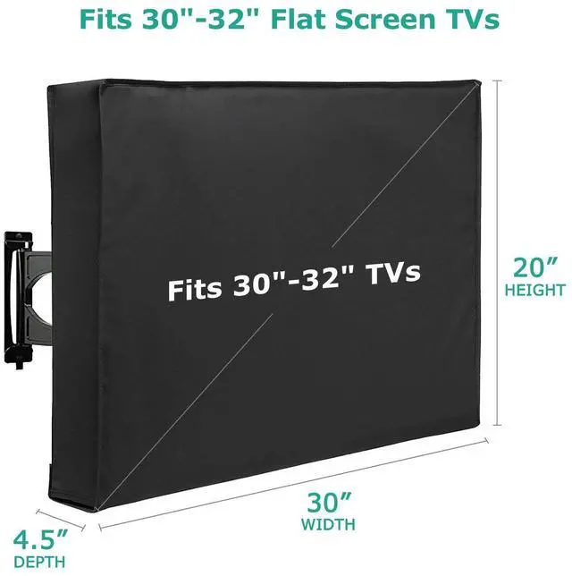 360° TOTALLY COVERED - with a dimension of 30 x 20 x 4.5 inches, the TV dustproof cover fits most 30"-32" TVs. Outside TV covers with bottom cover and high quality industrial velcro straps which can securely seal the entire TV, avoid seepage and dust, providing 100% coverage against water.