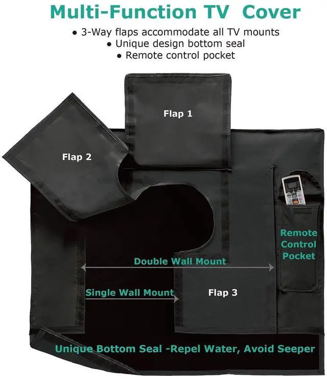 FITS MOST TV MOUNTS OR STANDS - featuring 3-way flaps, this outdoor TV cover can fit most TVs with double wall mounts, single wall mount, or stands.