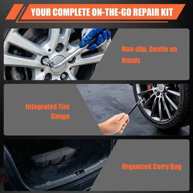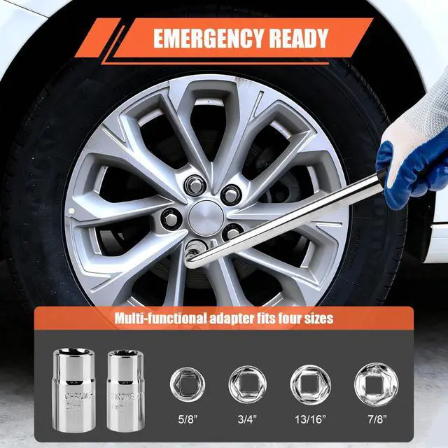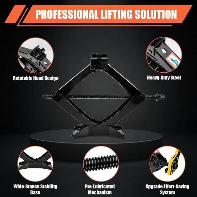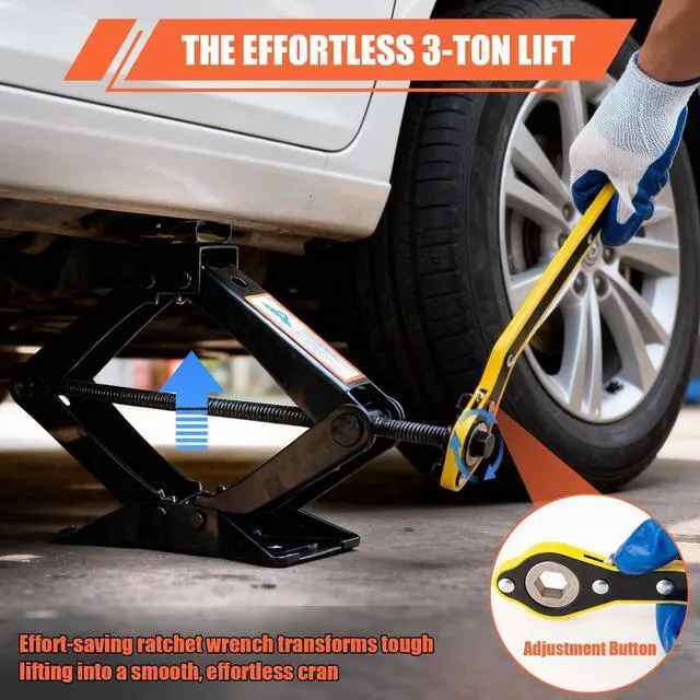 Our ratcheting wrench and 3rd-gen dual-action car jack make raising your car quick and effortless.